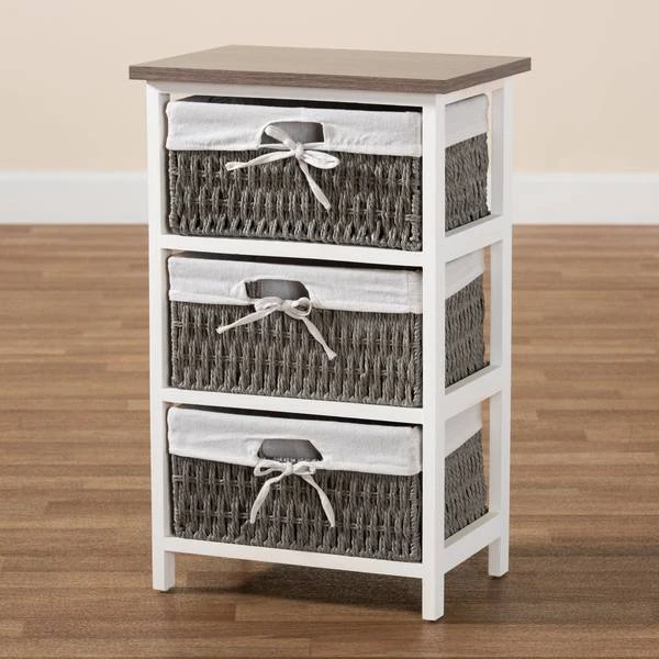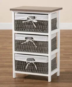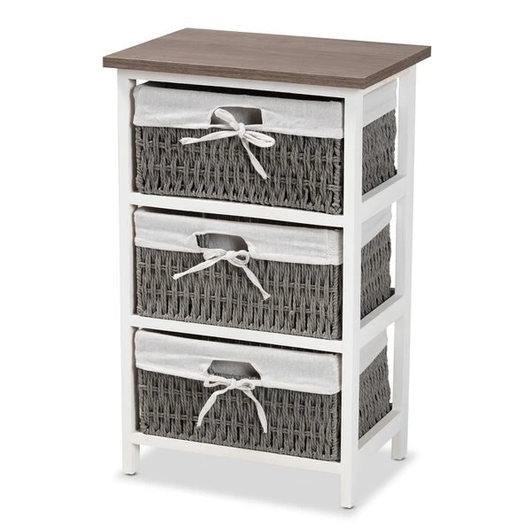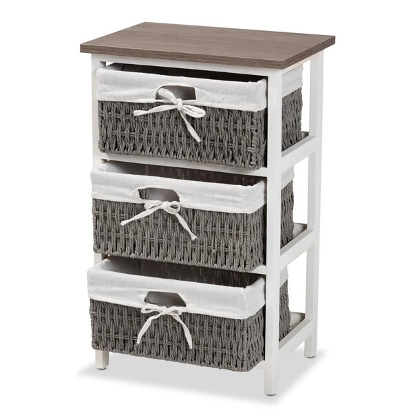 Baxton Studio Terena Modern Transitional Two-Tone Walnut Brown and White Finished Wood 3-Basket Storage Unit