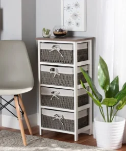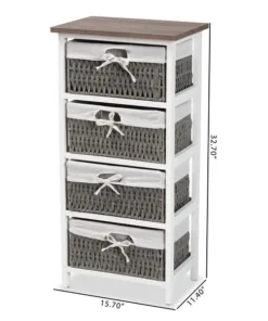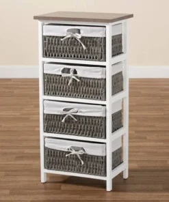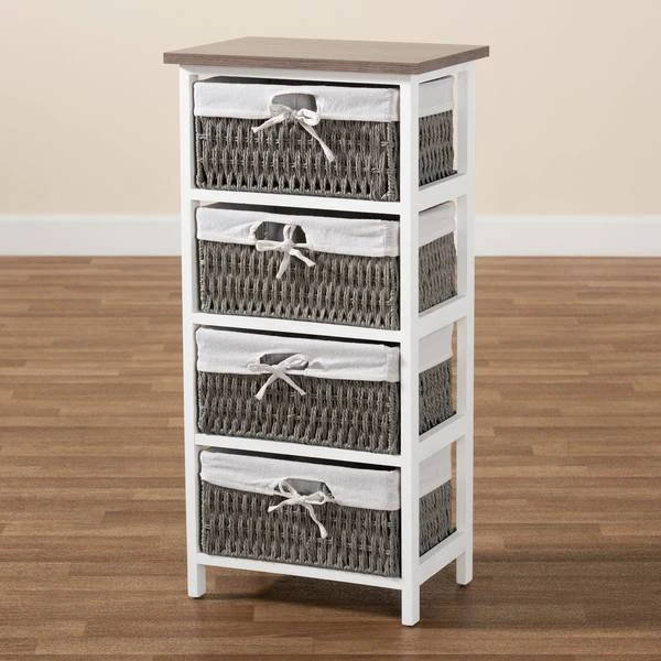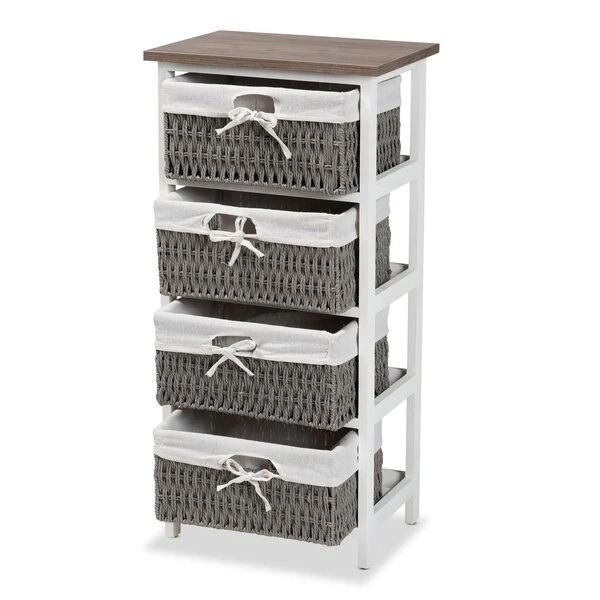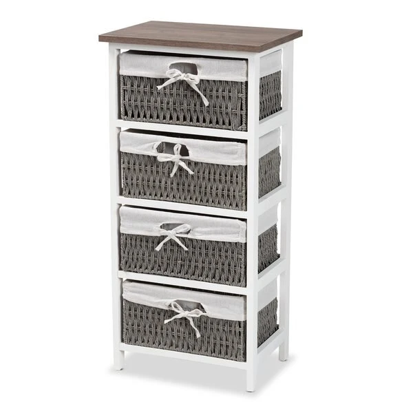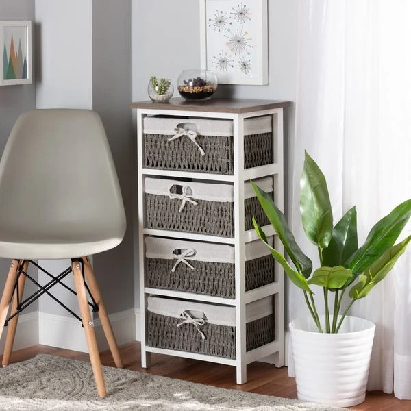 Baxton Studio Terena Modern Transitional Two-Tone Walnut Brown and White Finished Wood 4-Basket Storage Unit