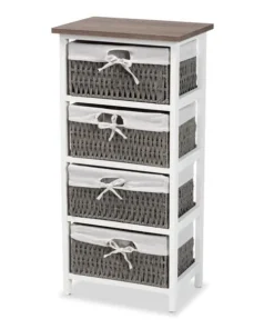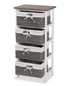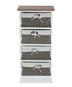 Add a touch of urban sophistication to your space with the stunning Terena storage unit. Made in China, this unit is comprised of a lightweight wood frame fitted with woven baskets. Four baskets expand the storage potential of any space while the rectangular tabletop acts as an eye-catching pedestal for decorative items. Comes fully assembled, the Terena utilizes fabric liners for a contemporary touch. A stylish and convenient upgrade to any space, the Terena storage unit is sure to leave an impression.