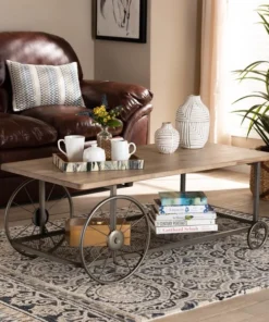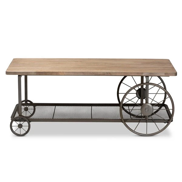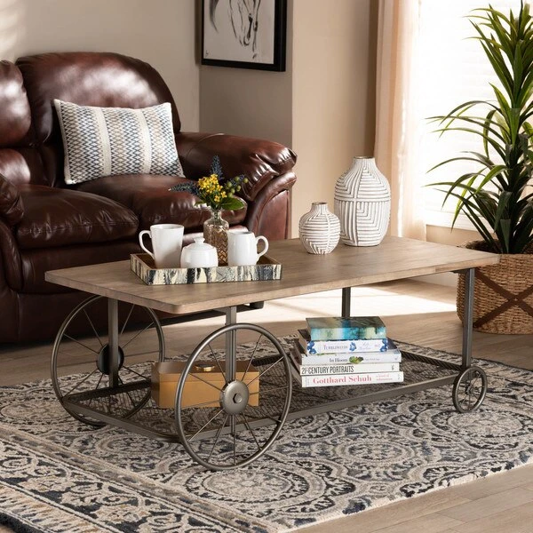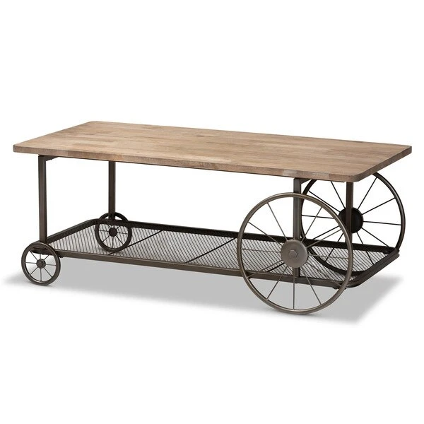 Add rustic charm to your space with the Terence coffee table. The Terence is comprised of a black finished metal frame fitted with a natural finished wood tabletop. A lower mesh metal shelf keeps various items on hand while organizing clutter. Requiring assembly, the Terence is fitted with decorative wheels that lend a unique, eye-catching aesthetic. Bring some vintage charisma to your space with the Terence coffee table.