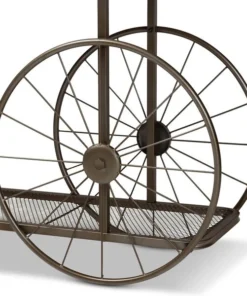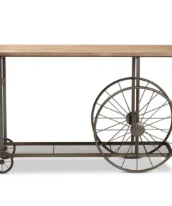 Add rustic charm to your space with the Terence console table. The Terence is comprised of a black finished metal frame fitted with a natural finished wood tabletop. A lower mesh metal shelf keeps various items on hand while organizing clutter. Requiring assembly, the Terence is fitted with decorative wheels that lend a unique, eye-catching aesthetic. Bring some vintage charisma to your space with the Terence console table.