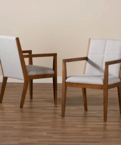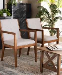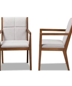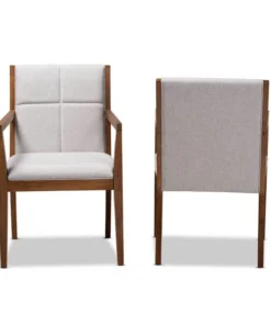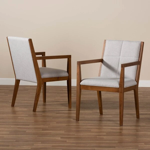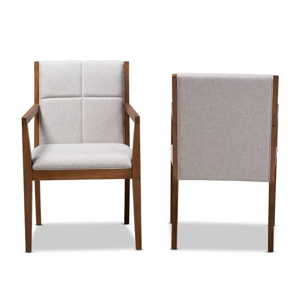 Transform any space with the mid-century modern Theresa chair. Made from a solid, walnut finished wood base and topped with soft polyester fabric, the Theresa turns any living room or busy office into a relaxing space for guests. Providing a naturally modern feel, the Theresa features angled legs that continue upward to form ergonomic armrests. Square-patterned stitching on the back lends a contemporary look that complements the chair's clean, streamlined silhoutte. The Theresa chair requires assembly and works exceptionally well in areas with limited space.