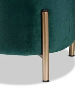 Baxton Studio Thurman Contemporary Glam and Luxe Green Velvet Upholstered and Gold Finished Metal Ottoman