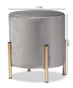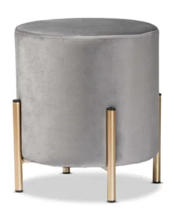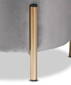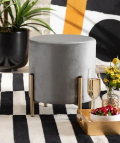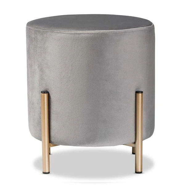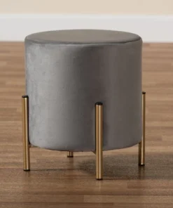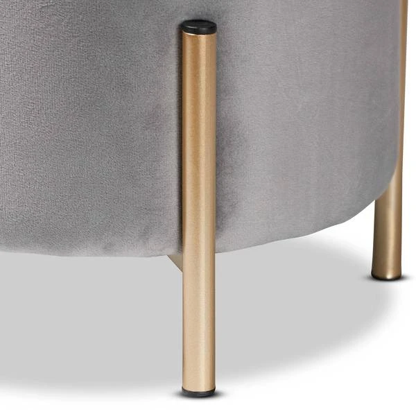 Baxton Studio Thurman Contemporary Glam and Luxe Grey Velvet Upholstered and Gold Finished Metal Ottoman