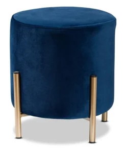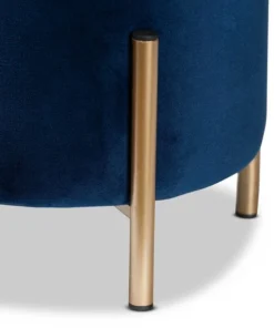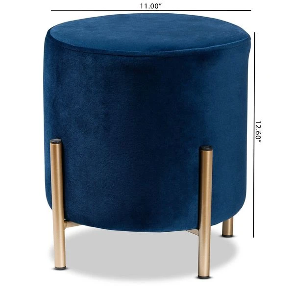 Baxton Studio Thurman Contemporary Glam and Luxe Navy Blue Velvet Upholstered and Gold Finished Metal Ottoman