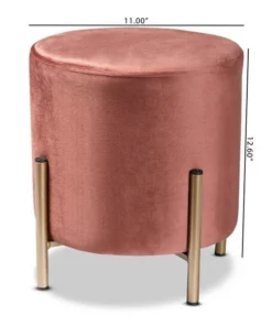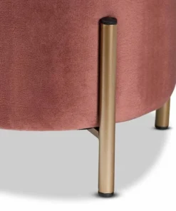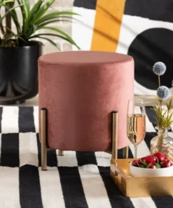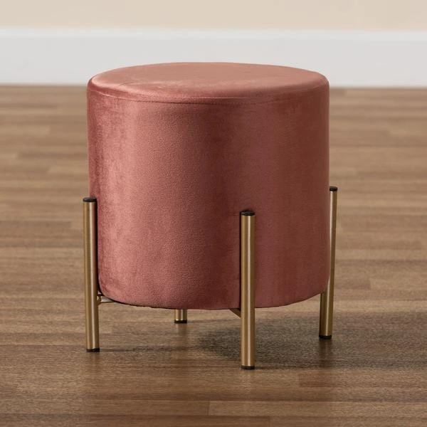 Baxton Studio Thurman Contemporary Glam and Luxe Pink Velvet Upholstered and Gold Finished Metal Ottoman