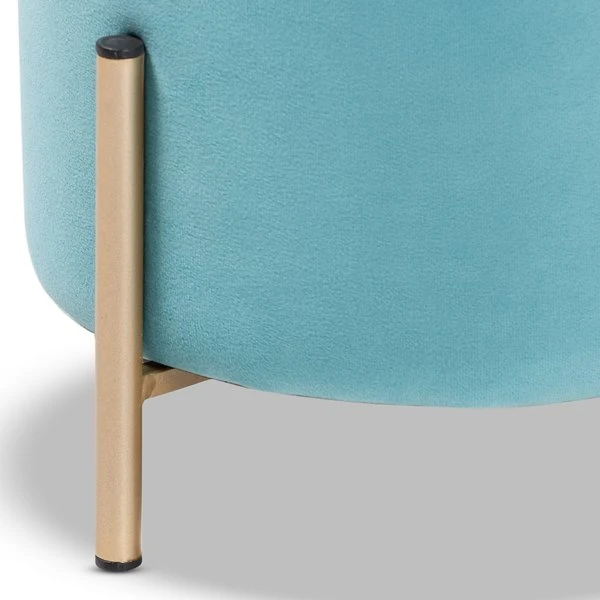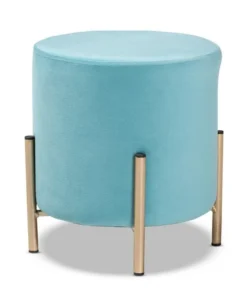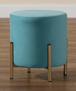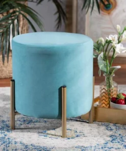 Baxton Studio Thurman Contemporary Glam and Luxe Sky Blue Velvet Upholstered and Gold Finished Metal Ottoman