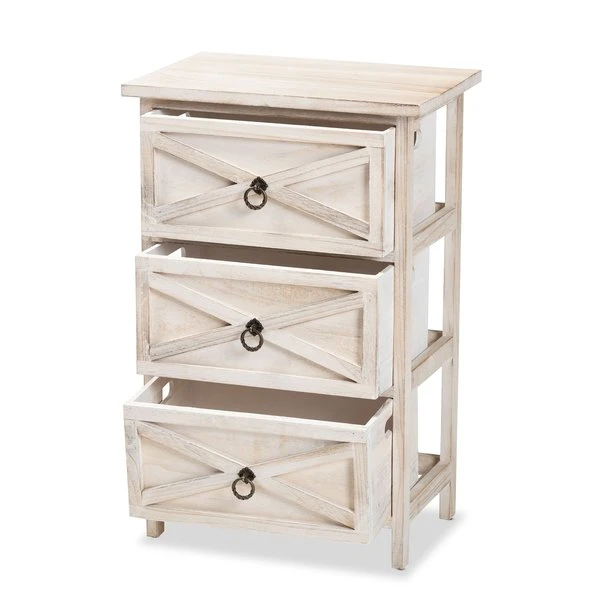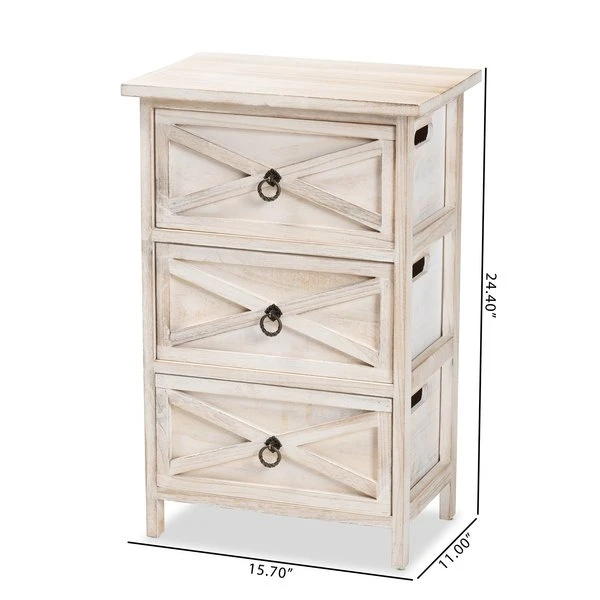 Baxton Studio Tracen Rustic and Modern Light Brown Wood 3-Drawer Storage Unit
