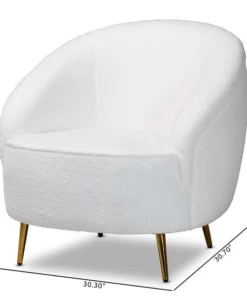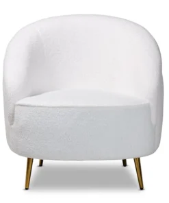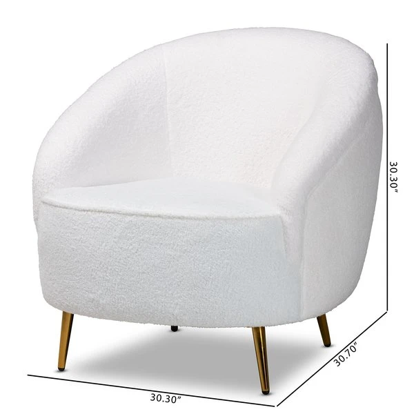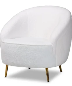 Baxton Studio Urian Modern & Contemporary White Boucle Upholstered and Gold Finished Metal Accent Chair