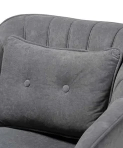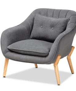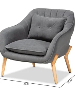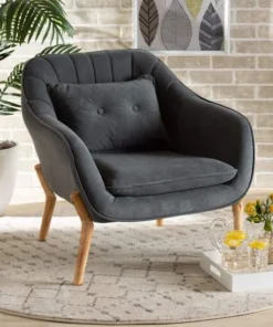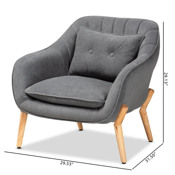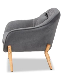 Baxton Studio Valentina Mid-Century Transitional Grey Velvet Upholstered and Natural Wood Finished Armchair