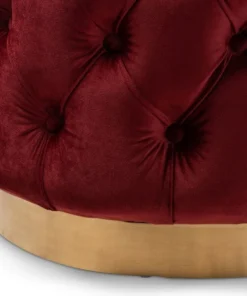Modern glamour meets comfort in the Valeria ottoman. Constructed from sturdy plywood and stainless steel, the Valeria is padded with foam and upholstered in a rich velvet fabric that is soft to the touch. A striking brushed-gold finish on the base adds a touch of luxury, while all-over button tufting highlights the subtle sheen of the velvet. Use this versatile piece as a footstool or as extra seating for guests. The Valeria ottoman will arrive fully assembled.