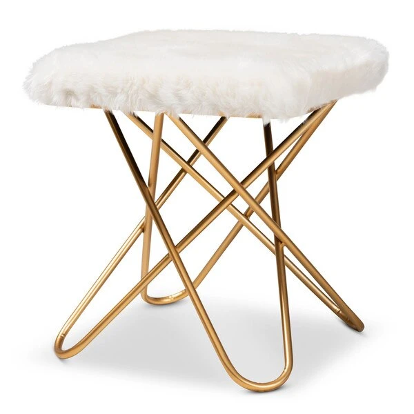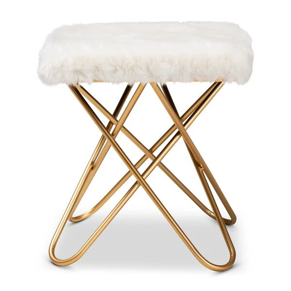 With its exquisite criss-cross base, the Valle looks chic from any angle. Upholstered in white faux fur, the Valle provides the ultimate in luxurious softness. Its open gold-toned base gives the ottoman a light, airy feel. Use this versatile piece as an extra seat or as a footstool. The Valle ottoman will arrive fully assembled.