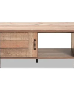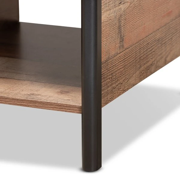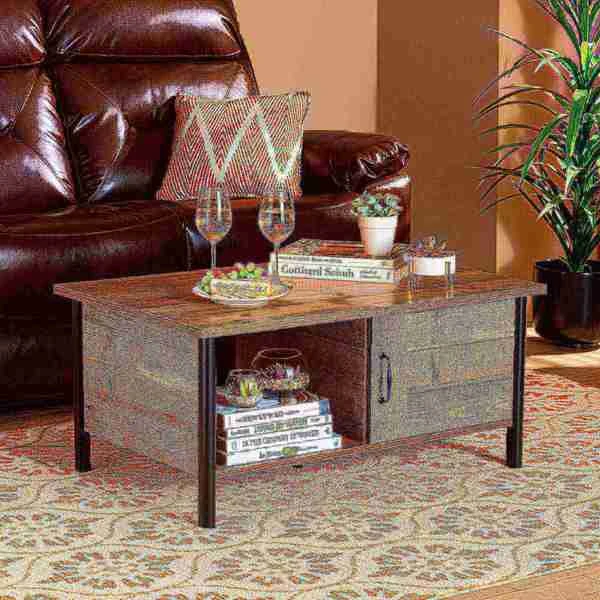 Add valuable space to your living room with the rustic personality of the Vaughan coffee table. Made in Malaysia, the Vaughan is constructed from wood showcasing a distinctive rustic oak brown finish. An enclosed shelf behind the door provides secure storage space for all your living room essentials, while the open shelf provides display space. Requiring assembly, the Vaughan is accented with black metal handles for an industrial touch. A superb blend of handy design and modern convenience, the Vaughan coffee table is an exceptional addition to the modern home.