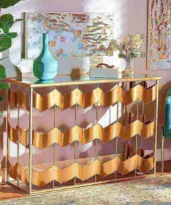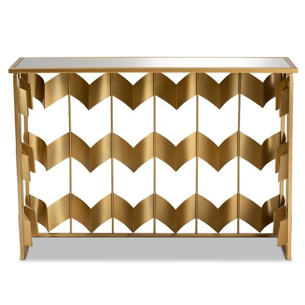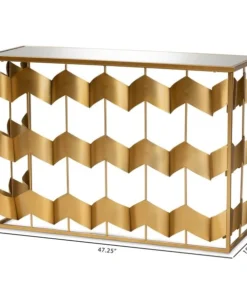 Make a chic statement in your home with the stunning Vega console table. Made in China, the Vega is comprised of a visually striking brushed gold finished metal frame fitted with a glass tabletop. The base features a unique angular pattern that makes it an eye catching pedestal for decorations. Requiring assembly, its slim silhouette and spacious tabletop make it well suited for entryways or hallways. A handy piece radiating glamour, the Vega console table is an exceptional addition to any space.