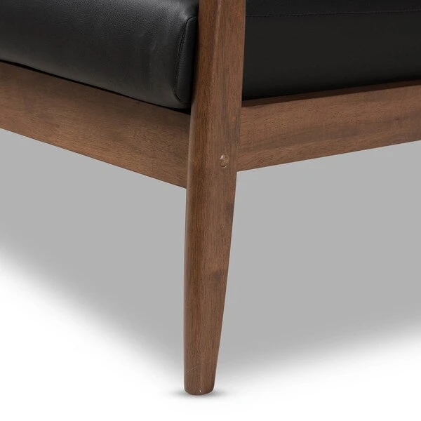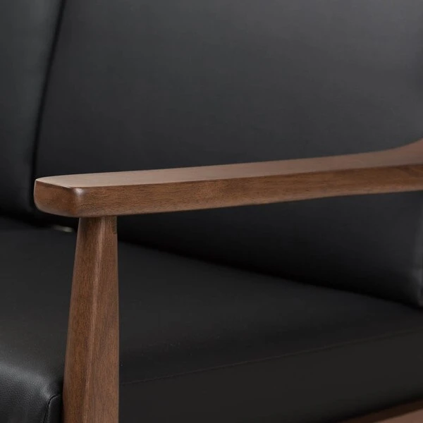 Look forward to unwinding after a long day, with the casual and relaxing design of the Venza 3-piece living room sofa set. Constructed of solid rubberwood frame for strength and long-lasting durability, this mid-century modern-inspired sofa set is built with clean paneled lines on the back, bringing relaxing vibes into your living room and complementing your home with lavish style. Cushions are upholstered in a soft but resilient black faux leather for plush comfort and lasting good looks. Featuring splayed legs with sloping arms for a mix of minimalist and contemporary styling in your space, the Venza is perfect as a lounge seating set or an occasional seating set in your living area, bedroom, or in a lounge arrangement, public waiting area or private office. The Venza requires assembly.