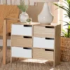 Manage the needs of your home with the outstanding versatility of the Volkan storage cabinet. Made in China, this cabinet is comprised of a solid metal frame fitted with wood shelves and fabric upholstered drawers. Five drawers offer exceptional storage space to organize your belongings while the wide shelf creates a lovely display for decorations. Requiring assembly, the Volkan features curved drawer handles that stand out against the wood. A fantastic solution to your storage needs, the Volkan cabinet transforms the atmosphere of any space.