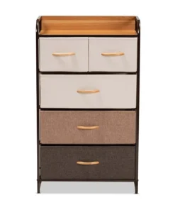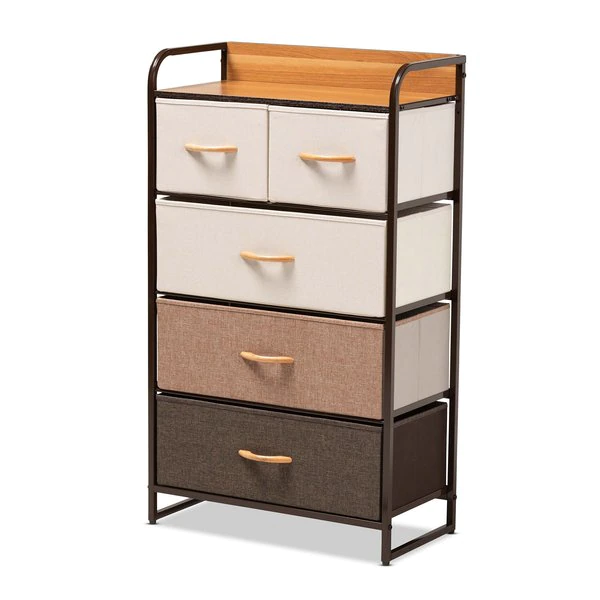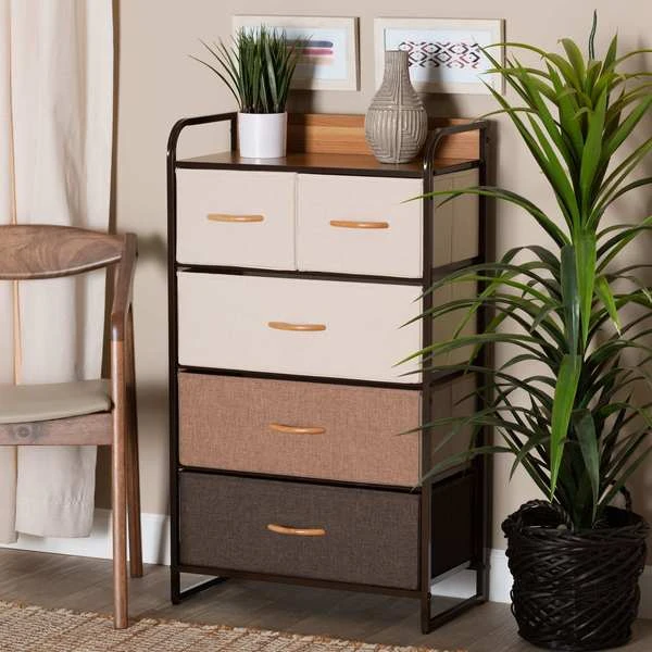 Baxton Studio Volkan Modern Multi-Colored Fabric Upholstered and Black Metak 5-Drawer Storage Cabinet