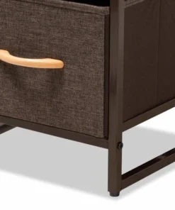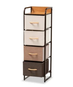 Manage the needs of your home with the outstanding versatility of the Volkan storage cabinet. Made in China, this cabinet is comprised of a solid metal frame fitted with wood shelves and fabric upholstered drawers. Four drawers offer exceptional storage space to organize your belongings while the wide shelf creates a lovely display for decorations. Requiring assembly, the Volkan features curved drawer handles that stand out against the wood. A fantastic solution to your storage needs, the Volkan cabinet transforms the atmosphere of any space.