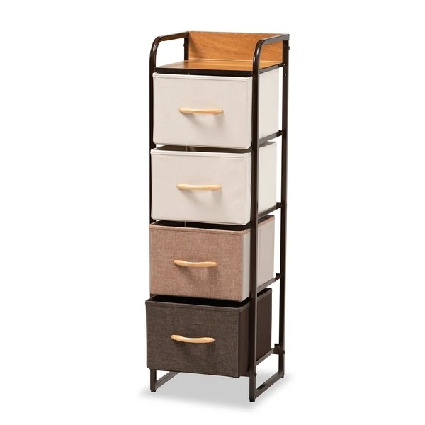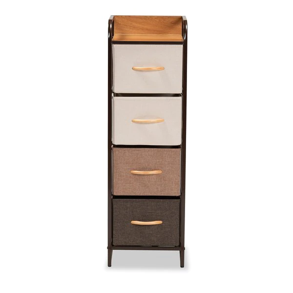 Baxton Studio Volkan Modern Multi-Colored Fabric Upholstered and Black Metal 4-Drawer Storage Cabinet