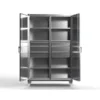The efficient design of the Wayland cabinet offers convenient storage in a sleek, streamlined frame. Made in China, this cabinet is comprised of a solid metal frame fitted with sturdy wood. Four open shelves create an exquisite display space for household essentials while two additional shelves behind the doors support larger items. Requiring assembly, the Wayland features round, metal door knobs for an industrial touch. A modernized storage solution, the Wayland cabinet is a fantastic update the layout of any space.