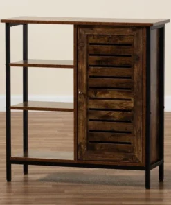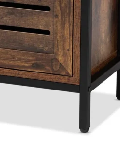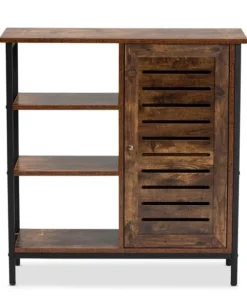 Baxton Studio Wayland ModernRustic Brown Finished Wood and Dark Grey Metal 1-Door Shoe Storage Cabinet