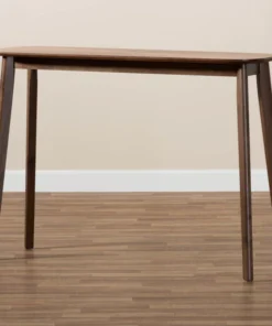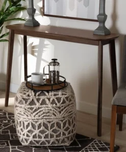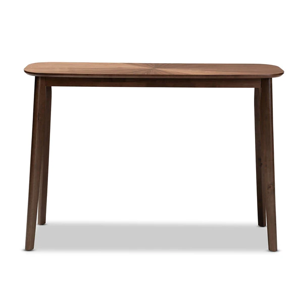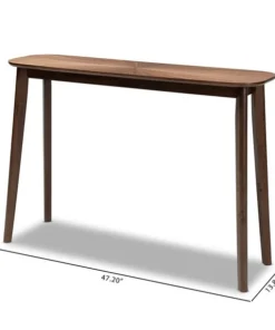 Add a retro chic touch to any space with the Wendy console table. Crafted from sturdy rubberwood, the Wendy displays a classic walnut brown finish. The tabletop features a unique woodgrain pattern that creates a striking sunburst effect. Inspired by mid-century modern design, the console is fitted with long, angled legs. Its slim silhouette makes it well suited for placement in a hallway, entryway, or living room. The Wendy console table requires assembly.