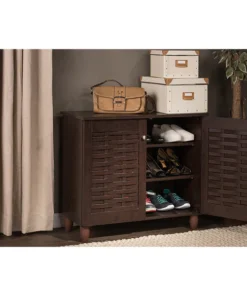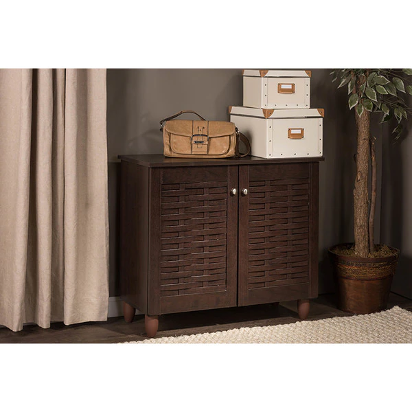 Neatly store your shoes in an organized manner with the Winda shoe cabinet. The shoe rack has ample shelving space to store your footwear while the doors keep the shoes out of sight for a piece of mind. These shoe cabinets are made of engineered wood, a range of derivative wood products which are manufactured by binding or fixing the strands, particles, fibers, or veneers or boards of wood, together with adhesives, or other methods of fixation to form composite materials., which is known for its practicality of everyday use. The wooden shoe cabinets' design and finish give these cabinets a grand and classic look to hold all of your entryway essentials. The shoe cabinet requires assembly.