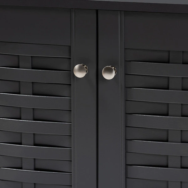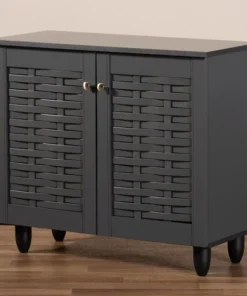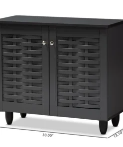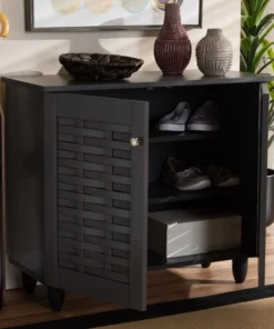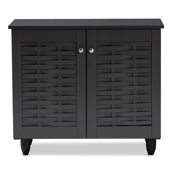 Keep your shoes organized and out of sight with the Winda cabinet. Featuring a stylish contemporary design and dark grey finish, the Winda is easy to coordinate with any style of decor. Two doors conceal two shelves with storage space for up to nine pairs of shoes. Slits are embedded within the doors to enable air circulation and prevent mold growth on your shoes. The Winda cabinet requires assembly.