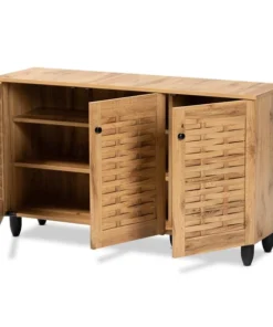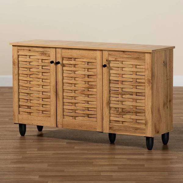 Baxton Studio Winda Modern and Contemporary Oak Brown Finished Wood 3-Door Shoe Cabinet