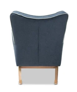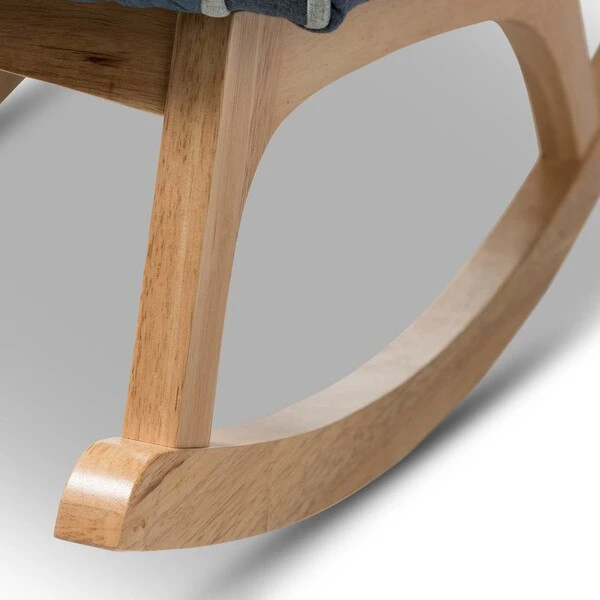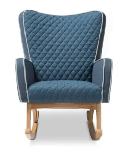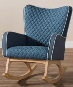 Sink into comfort and rock your troubles away in the Zoelle rocking chair. The mid-century modern-inspired design gets a refreshing update with the quilted design of this chair's blue fabric upholstery. A subtlety contrasted piping outline adds to the Zoelle's unique and homey look. Imagine relaxing in this rocking chair's foam padded seat and chair back while you rock gently on its natural-finished, solid rubberwood legs. The Zoelle is a fun and charming addition to your nursery, livingroom, or any shared space. The Zoelle requires assembly.