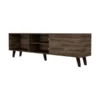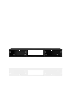 Espresso Finish Audio/Video Furniture System Attractive and sturdy. this contemporary design with a hanging shelf is constructed of scratch resistant. High Gloss Black powder-coated metal and Black tempered safety glass accented with beautiful Espresso finished sides and back. It will accommodate most Flat Panel TVs up to 65" or 200 lbs.. plus at least five audio/video components and a center channel speaker. There is an integrated CMS Cable Management System to hide wires and interconnect cables.Fits flat panel TVs up to 65 or 200 lbs and at least five audio video components.CMS Cable Management System to hide wires and interconnect cables.Dimensions: 60 W x 22 H x 18 D.