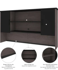 The Norma Collection is ideal for any type of office. You can easily arrange the pieces in this collection to fit your needs by adding a desk shell or a hutch. Keep your space organized with the multiple storage options. Not only will your space be clutter-free, it will also feel modern and stylish thanks to the two-tone design and the metal handles with black finish. Enhance your space with this affordable collection! Features 1 open storage compartment (38.8′′ W x 25.3′′ H x 10.6′′ D) with 2 adjustable shelves and 1 adjustable shelf behind each of the 2 doors. One grommet and a rubber strip for efficient wire management. Finished back. Made of laminated, high-density commercial-grade particle board, compliant with Carb phase 2. Meets or exceeds ANSI/BIFMA safety and performance standards. The top of the hutch and each shelf in the open storage area can support up to 25 lb.