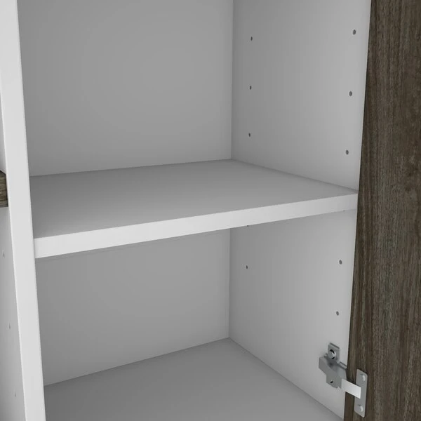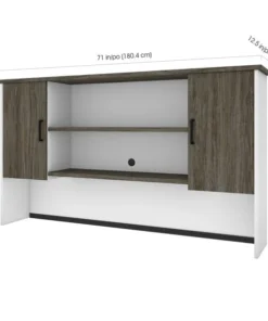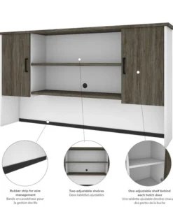 The Norma Collection is ideal for any type of office. You can easily arrange the pieces in this collection to fit your needs by adding a desk shell or a hutch. Keep your space organized with the multiple storage options. Not only will your space be clutter-free, it will also feel modern and stylish thanks to the two-tone design and the metal handles with black finish. Enhance your space with this affordable collection! Features 1 open storage compartment (38.8′′ W x 25.3′′ H x 10.6′′ D) with 2 adjustable shelves and 1 adjustable shelf behind each of the 2 doors. One grommet and a rubber strip for efficient wire management. Finished back. Made of laminated, high-density commercial-grade particle board, compliant with Carb phase 2. Meets or exceeds ANSI/BIFMA safety and performance standards. The top of the hutch and each shelf in the open storage area can support up to 25 lb.