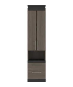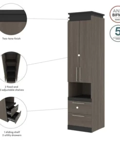 With quality materials and 1 fixed shelf, this unit provides the utmost stability. The 2 adjustable shelves offer flexibility. Each shelf can support up to 30 lb to keep your belongings safe. A unique pull-out shelf supports up to 20 lb and can serve as a handy bedside table. The elevated top is a unique design feature that adds flair to the Storage Cabinet. The top has a weight capacity of up to 30 lb, meaning it can be used as an extra shelf. The unit coordinates beautifully with the Full or Queen Murphy Bed from the Orion collection (all sold separately). Tested to meet ANSI/BIFMA quality standards for safety and performance.