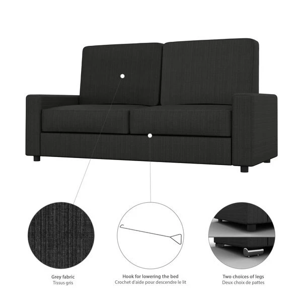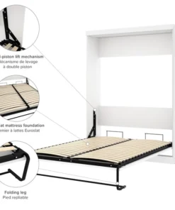 This set includes a Queen Murphy Bed, one Storage Unit and a Sofa. Queen Murphy bed and one Storage UnitCombining style and convenience, Pur by Bestar is the perfect solution to furnished condos, lofts, studios, guest’s rooms and home offices. The collection brings multi functionality to a single room. The kit comprises a queen Murphy bed and a 25“ storage unit. The mechanism provides simplified assembly of the Murphy Bed. Increased comfort due to Euroslat mattress support system. Simple and safe dual piston system makes opening and closing user-friendly. Easy to use; use the handle to pull the bed towards you to lower the bed and flip the leg down onto the floor. Accommodates a standard queen mattress up to 12“ thick and weighing at least 70 lbs. Maximum dimensions of the mattress are 60“ X 80“. Mattress not included; Box spring not required. Front panel is installed as one of the last steps making the mounting to studs in a wall much easier. The minimum height required of the ceiling is 91 in. Clearance of 9. 4“ under the bed when it is open. Bed when opened will require a clearance of 101“. The storage unit has 2 fixed and 3 adjustable shelves to maximize your options. Shaker-inspired trim and metal handles on Murphy bed. Assembly required. Easy to install. Murphy bed : 64. 6“ (W) x 20. 3“ (D) x 89. 1“ (H). 25‘‘ storage unit : 25“ (W) x 18. 2“ (D) x 83. 7“ (H). Sofa for Queen Murphy bed – fabric WE3QUALITY MATERIALS: Suspension is made with 9-gauge sinuous coils. Seat cushions are filled with non-glue cotton covered with D30 foam. 2” high plastic or chrome legs. Hardwood frame. SPACE-SAVER: The sofa and Murphy bed combination is the perfect solution for making the most out of your space. It offers both a place to sit and a place to sleep in very little space. To fold out the bed, simply remove the cushions and lower the bed. COMPATIBLE: The sofa can be used as an add-on to any of Bestar’s Queen Murphy bed. Alternatively, it can be placed against a wall. You can choose either plastic or chrome legs. COMFORTABLE: The seat cushions are 7. 9” thick. All fabrics have a heavy duty backing. No nails are used, only staples. NOTE: Pre-assembled, except the legs. Overall dimensions: 78” W x 33. 5” D x 39” H. Must be placed against a murphy bed or a wall to support the back cushions. Cannot be placed in the middle of a