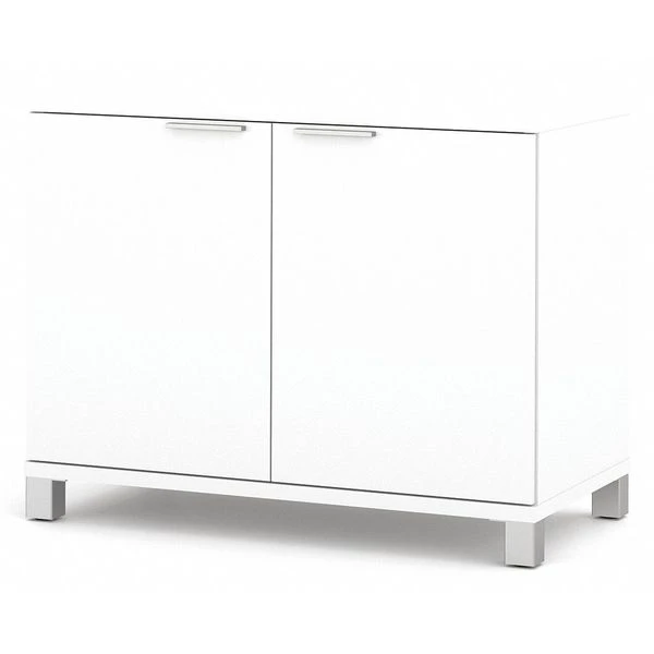 Storage Cabinet, Rectangular, Pro-Linea Series, Height 28 13/32 in, Width 35 39/64 in, Depth 19 1/2 in, Color White, Material Melamine and Commercial Grade Particle Board, Number of Shelves 2, Number of Drawers 0, Configuration Double Door, Doors 2, Handle Metal, Assembly Required, Standards ANSI/BIFMA