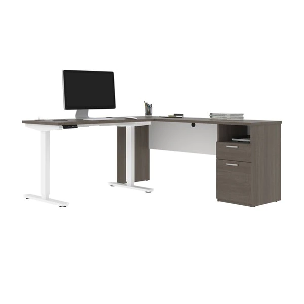Whether you‘re working from home or at the office, an ergonomic workstation is a must. This L-shaped standing desk allows you to work while sitting or standing. You can save your favorite heights and automatically switch positions at the push of a button. The storage cubby and drawers allow you to store daily supplies and maintain a clutter-free desktop. Cable management is a breeze thanks to the grommet on the desktop, and you can easily charge your most used devices thanks to the USB/power outlet. Choose this desk for ultimate comfort and productivity.