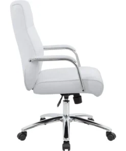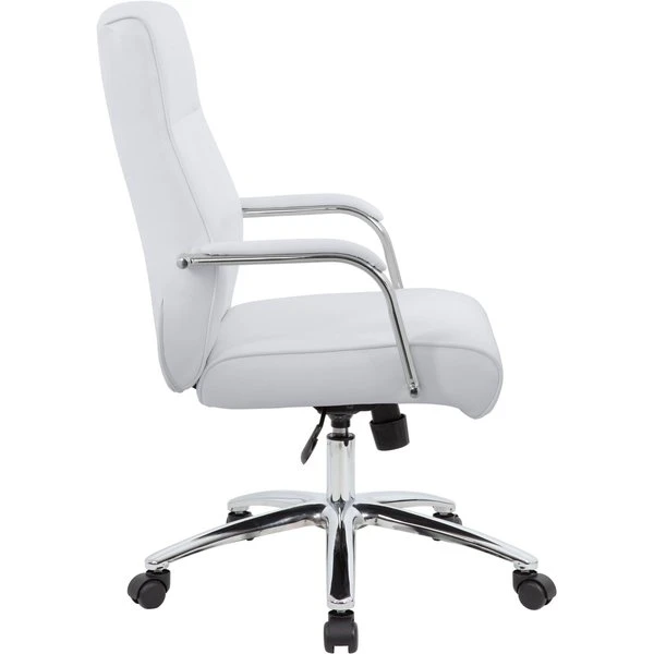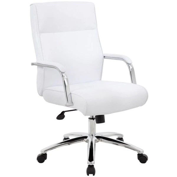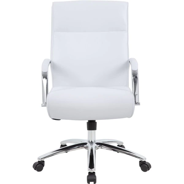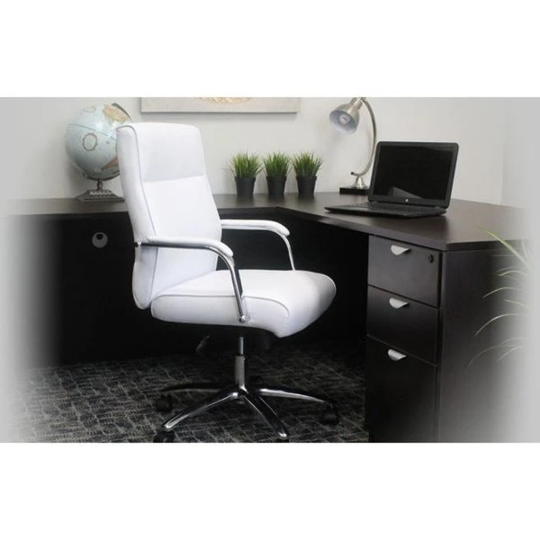Executive Chair, Executive Chair, Back Color Family White, Back Material Family Vinyl, Seat Material Fabric, Back Material Fabric, Nominal Seat Height Range 19 in to 22 in, Seat Color White, Weight Capacity 275 lb, Unassembled, Seat Height Min. 19 in, Seat Height Max. 22 in, Back Height 25 in, Arm Style Fixed, Caster Type Carpet, Overall Height 43 in, Overall Width 30 in, Overall Depth 23 in, Seat Width 20 in, Seat Depth 18 1/2 in, Back Width 20 in, Number of Casters 5, Number of Glides 0