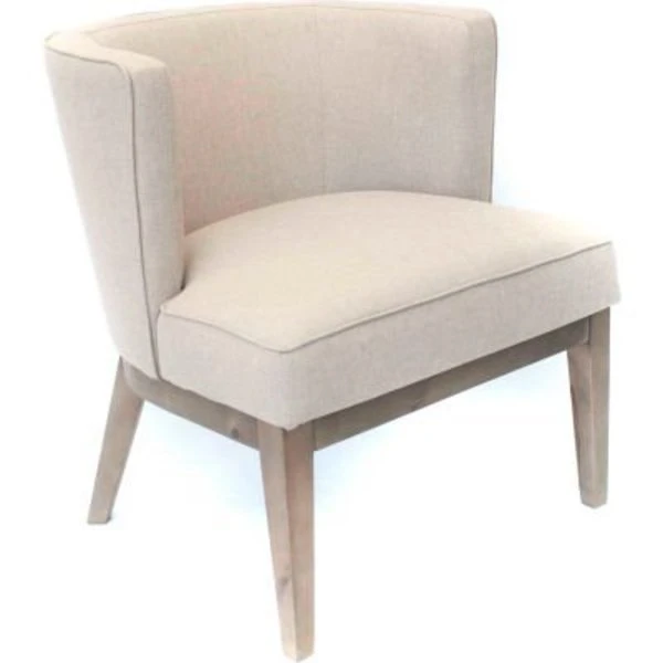 fashionable accent, guest or reception chair. Upholstered in beige commercial grade linen fabric. Extra-large padded seat for extra comfort. Driftwood finish legs.