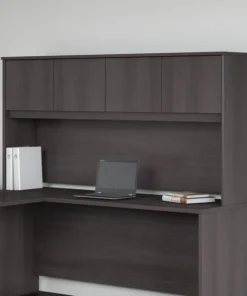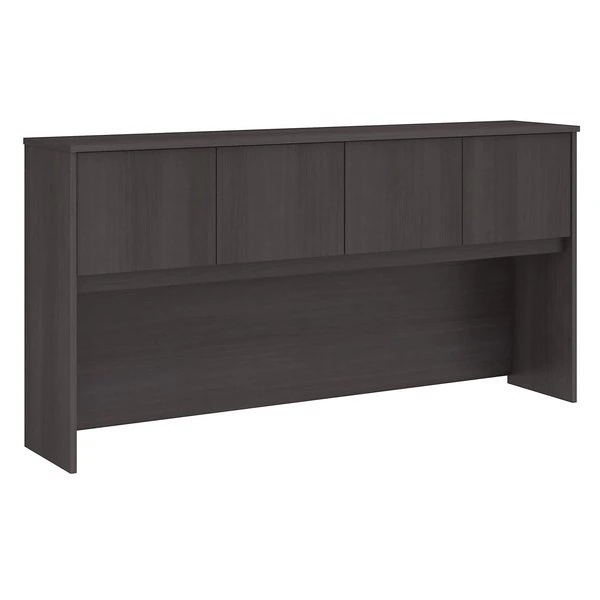 Organize your office with the durable, attractive and functional Bush Business Furniture Studio C 72W Hutch. With 4 doors featuring self-closing Euro-style hinges, the Hutch conveniently stores office supplies, books and more to keep your Studio C desk organized. The Hutch mounts to the 72W Office Desk or Credenza Desk (sold separately) and provides a fully finished back panel. Add a coordinating Tackboard (sold separately) to keep your important notes within sight while you work. The thermally fused laminate construction resists scratches, stains and damage throughout your 40-plus hour week. The classic Hutch design meets contemporary White and Storm Gray finish options to fit the needs of the modern workspace. The 4 door hutch comes meets ANSI/BIFMA quality test standards. See the full collection for coordinating items available to make your office your own with Studio C.