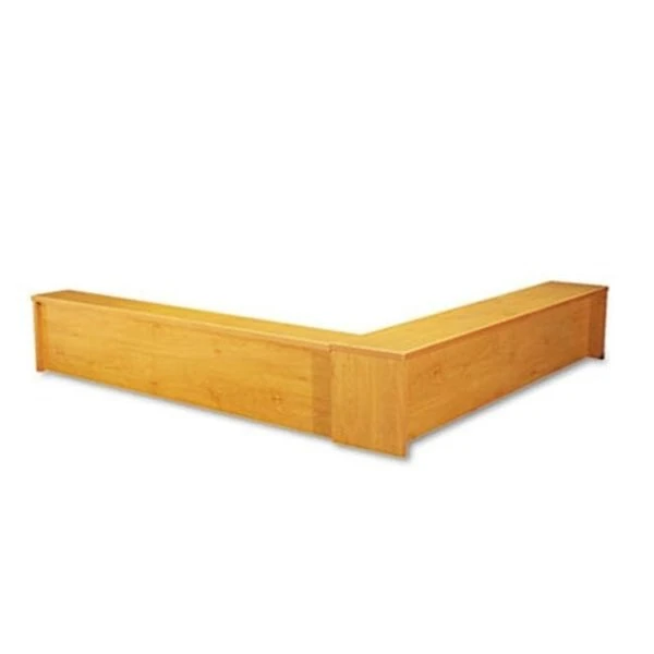 Transform your desk and return bridge into a welcoming work area that is ideal for transacting business or welcoming guests. Durable laminate construction with Diamond Coat top surface for scratch- and stain-resistance. Assembles right- or left-handed. Color(s): Graphite Gray; Natural Cherry; Width: 77 in; Depth: 71 in; Height: 14 in.