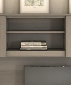 The Bush Furniture Somerset 60W Hutch offers the storage and display capacity you need to complete your beautiful and functional home office. The Hutch mounts securely on either side of the coordinating 60W L Shaped Desk (sold separately) for increased storage capacity and a finished appearance. Storage options include a large open compartment that is perfect for books, binders or decorations as well as a pair of frosted glass doors that provide concealed storage to eliminate visual clutter. An adjustable shelf makes it easy to store and display items of various sizes. Transitional styling includes contemporary metal hardware and your choice of several attractive finish options for an alluring home office design that works with your existing decor. This 60-inch Desk Hutch is tested to meet ANSI/SOHO quality standards for safety and performance. See the full line of coordinating items from the Somerset Collection to expand your home office in style.