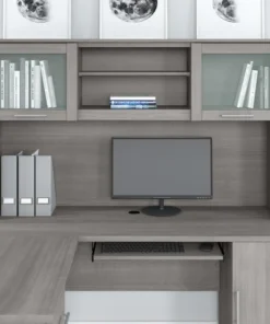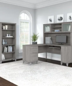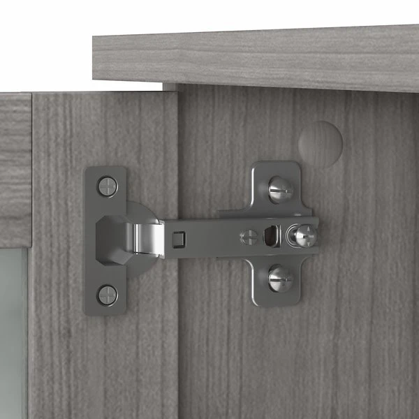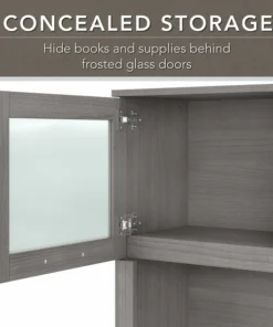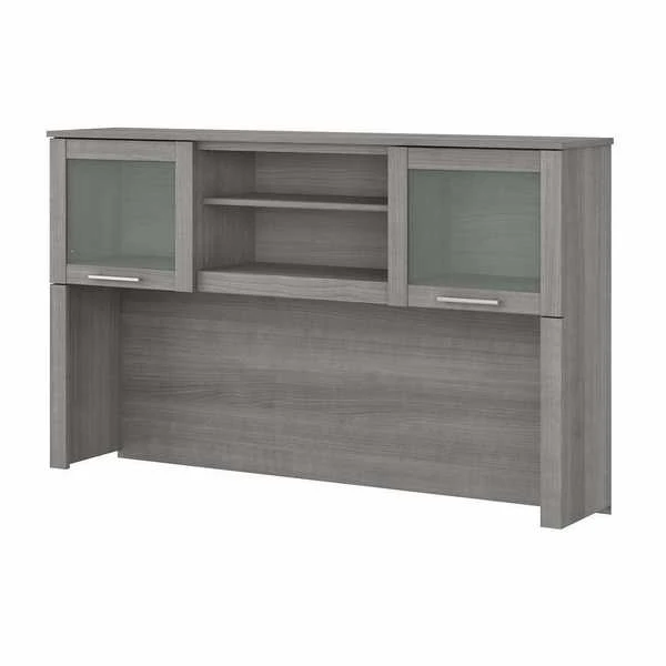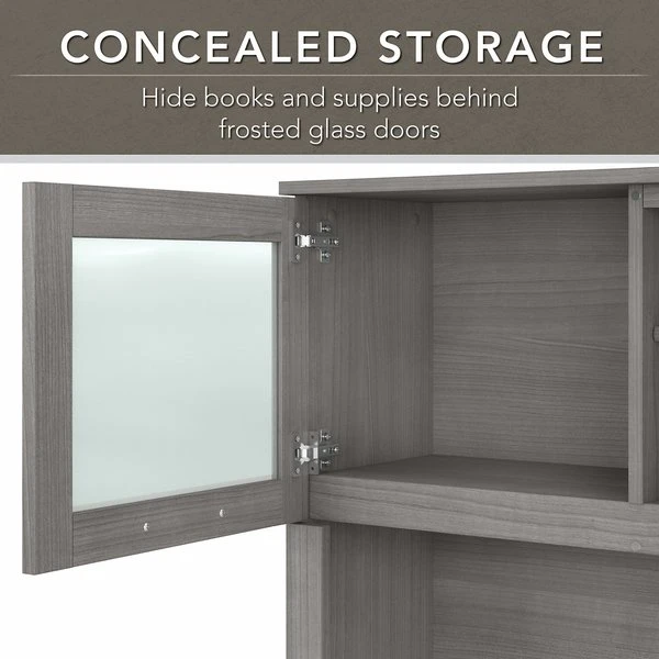 The Bush Furniture Somerset 60W Hutch offers the storage and display capacity you need to complete your beautiful and functional home office. The Hutch mounts securely on either side of the coordinating 60W L Shaped Desk (sold separately) for increased storage capacity and a finished appearance. Storage options include a large open compartment that is perfect for books, binders or decorations as well as a pair of frosted glass doors that provide concealed storage to eliminate visual clutter. An adjustable shelf makes it easy to store and display items of various sizes. Transitional styling includes contemporary metal hardware and your choice of several attractive finish options for an alluring home office design that works with your existing decor. This 60-inch Desk Hutch is tested to meet ANSI/SOHO quality standards for safety and performance. See the full line of coordinating items from the Somerset Collection to expand your home office in style.