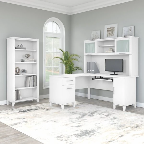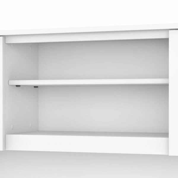 The Bush Furniture Somerset 60W Hutch offers the storage and display capacity you need to complete your beautiful and functional home office. The Hutch mounts securely on either side of the coordinating 60W L Shaped Desk (sold separately) for increased storage capacity and a finished appearance. Storage options include a large open compartment that is perfect for books, binders or decorations as well as a pair of frosted glass doors that provide concealed storage to eliminate visual clutter. An adjustable shelf makes it easy to store and display items of various sizes. Transitional styling includes contemporary metal hardware and your choice of several attractive finish options for an alluring home office design that works with your existing decor. This 60-inch Desk Hutch is tested to meet ANSI/SOHO quality standards for safety and performance. See the full line of coordinating items from the Somerset Collection to expand your home office in style.