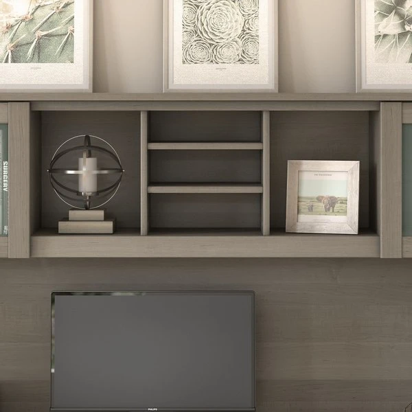 The Bush Furniture Somerset 72W Hutch offers the storage and display capacity you need to complete your beautiful and functional home office. The Hutch mounts securely on either side of the coordinating L Shaped Desk or 72W Office Desk with Drawers (both sold separately) for a customizable workspace solution. Storage options include large open compartments that are perfect for books, binders or decorations and two shelves to hold work-in-progress. A pair of frosted glass doors provides concealed storage to eliminate visual clutter. Transitional styling includes contemporary metal hardware and your choice of several attractive finish options for an alluring home office design that works with your existing decor. This 72-inch Desk Hutch is tested to meet ANSI/SOHO quality standards for safety and performance. See the full line of coordinating items from the Somerset Collection to expand your home office in style.