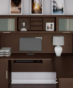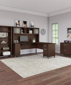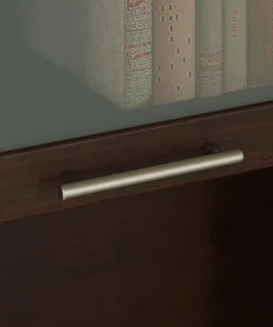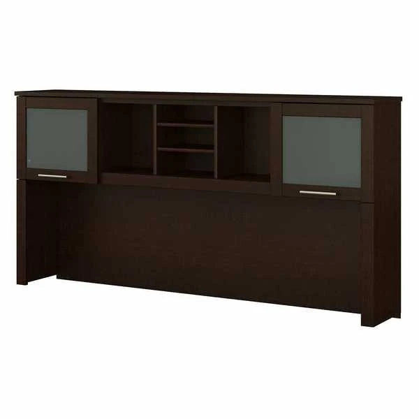 The Bush Furniture Somerset 72W Hutch offers the storage and display capacity you need to complete your beautiful and functional home office. The Hutch mounts securely on either side of the coordinating L Shaped Desk or 72W Office Desk with Drawers (both sold separately) for a customizable workspace solution. Storage options include large open compartments that are perfect for books, binders or decorations and two shelves to hold work-in-progress. A pair of frosted glass doors provides concealed storage to eliminate visual clutter. Transitional styling includes contemporary metal hardware and your choice of several attractive finish options for an alluring home office design that works with your existing decor. This 72-inch Desk Hutch is tested to meet ANSI/SOHO quality standards for safety and performance. See the full line of coordinating items from the Somerset Collection to expand your home office in style.