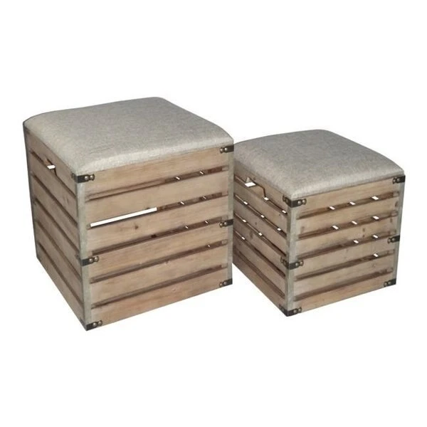 We pride ourselves in offering only the best quality products to you. Our mission has always been to optimize the value of the products we make through better quality. designs and aggressive pricing. Touch and Feel the handpicked pieces of our products from our wide portfolio. FeaturesSquare Wood Slat Storage Bench with Metal Accent & Cushioned LidSet of 2SpecificationsWeight: 21.2 lbs
