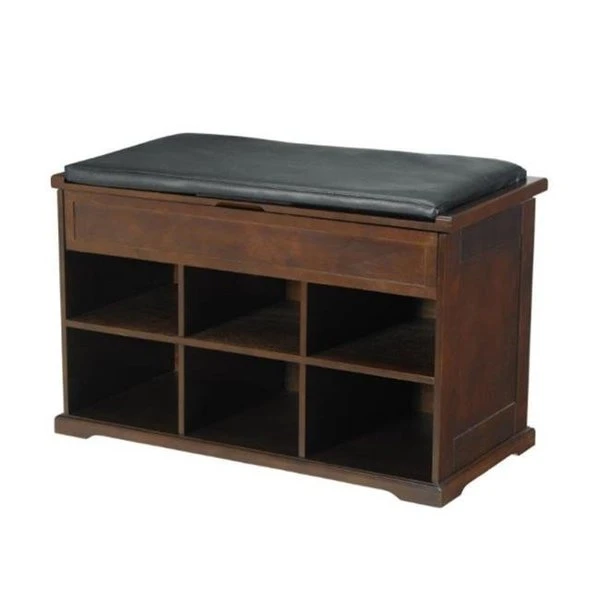 No more piles of shoes by the door. This stylish and unique is a perfect addition to your entry way, bedroom and/or walk-in closet. The bench comes with a lift up dark espresso cushioned seat with additional storage underneath to hide away gloves, scarves and hats. You can easily store and accommodate 6 to 12 pairs of shoes. Cushioned lid comes with spring loaded hinges for easy and safe to use. The overall dimensions are 31.75in.L x 19.75in.H x 15.75in.W
