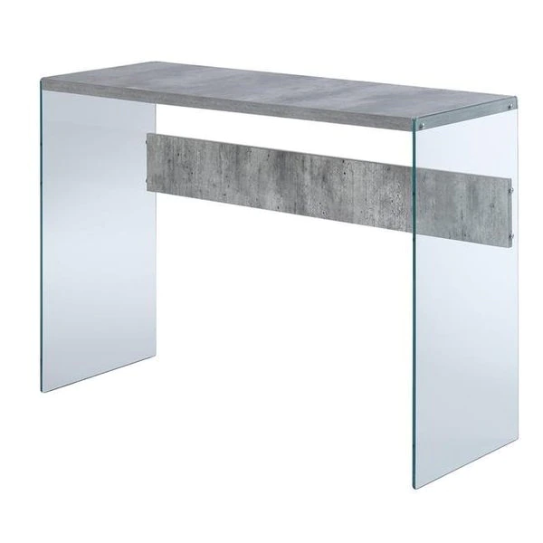 FeaturesGet in the orbit of the soho console table that is perfect for any modern spaceComplementing the broad faux birch finish top surface that makes a perfect landing spot for your pictures. vases. or other knick knacksThe tempered glass sides catches the eye and makes this piece a sparkling addition to your living roomPerfect for behind your sofa or along any wall of your home this is a great addition to any home's decorSpecificationsFinish: Faux Birch / GlassType: Console TableDimension: 30 x 15.75 x 44 in.Weight: 44 lbs