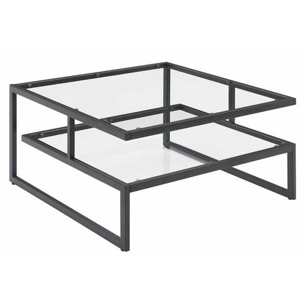 Ready to mesmerize your guests. With the Royal Crest Stripes Coffee Table by Convenience Concepts. you can do it with ease. The distinctive clean-line silhouette is simply breathtaking. Not only is this modern contemporary design stylish but it is also made from durable materials. The frame was carefully crafted from powder coated metal. making it long-lasting. Both the tabletop and bottom shelf are made from tempered clear glass. making them easy to clean. Apart from fashion. this two-tier unit offers well-thought-out functionality that will optimize your storage and display space. Exhibit your favorite collectibles or books in the bottom shelf while using the tabletop to hold your favorite cup of coffee. Exquisitely useful. this glass table can be placed in your living room. home office or den. Bring home today and enjoy immediately with its simple and fast 4-step assembly! Part of the Royal Crest Collection by Convenience Concepts. Loving the look. Pair this accent piece with the Royal Crest Stripes End Table by Convenience Concepts SpecificationsColor: Clear Glass & Charcoal GrayDimension: 32" L x 32" W x 18" HWeight: 58 lbs